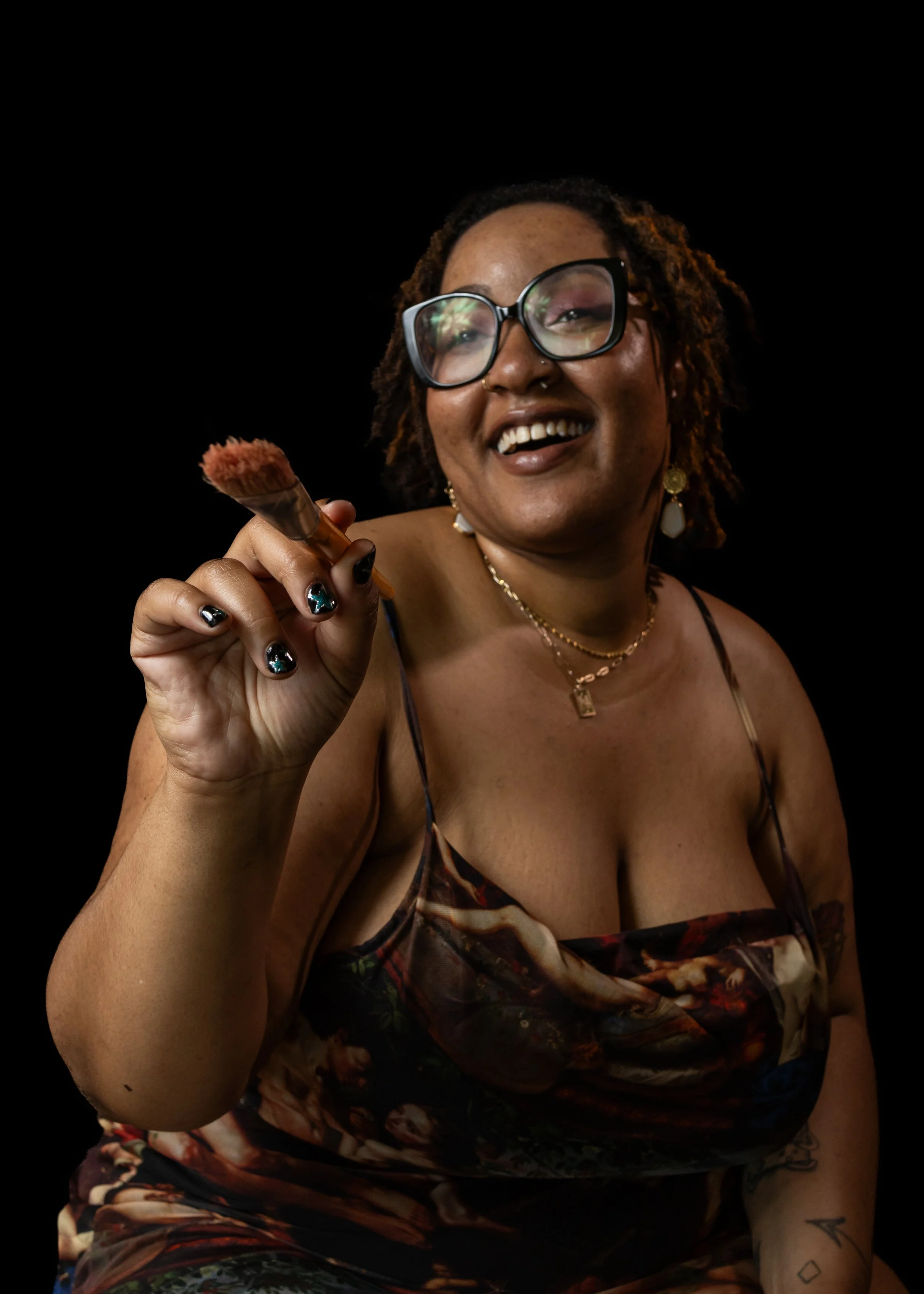 Mekhia (Khia) Thompson, Theartofkhia, born 1999 is a multidisciplinary artist based in Missouri. Through a blend of multiple mediums, the intricacies of day to day life are translated to raw expressions of self. Influenced by experiences from all walks of life, they take memories and manifestations and blend them into one. Through a bold use of color, their works experiment with lighting and expression inspired by music, nature, landmarks and people to spark conversation and connections. As of recent, through the use of multiple figures, they portray the human nature of longing and the need for connection--rather it be natural, familial, communal, platonic or romantic. They aspire to inspire a change in the perception and interaction with art, one work at a time.